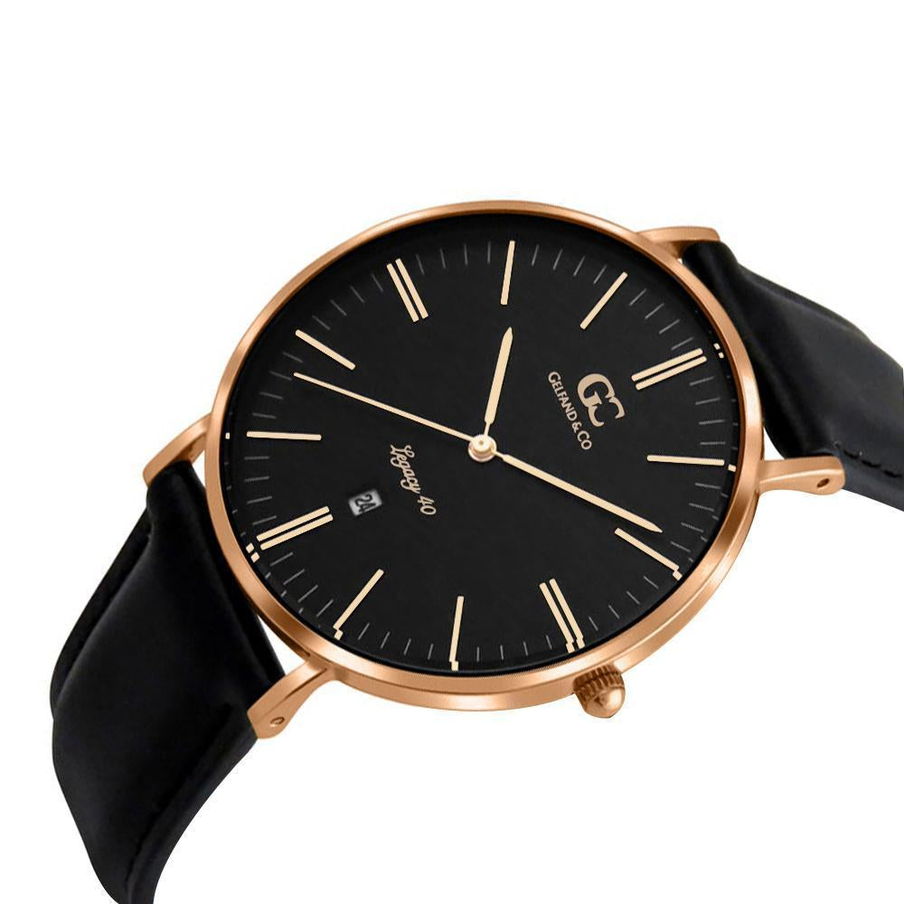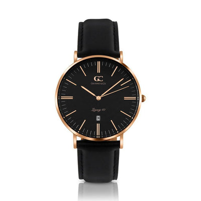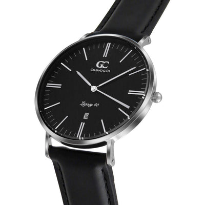 A genuine black leather strap incorporates the ebony sundial upon Webster. The classic push/pull crown provides reliable analog accuracy to set the date, hour, and minute with practical finesse. Elect from Silver or Rose Gold accents to articulate your palate.