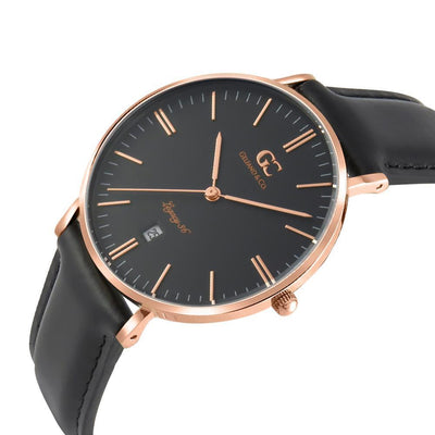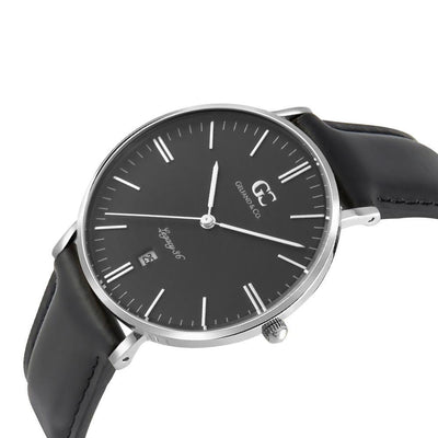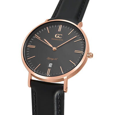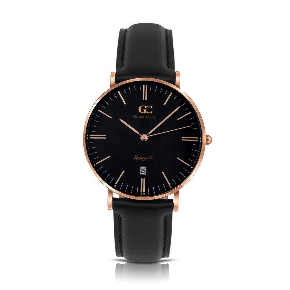 A genuine black leather strap reveals the rogue ebony sundial synchronizing Varick. A classic push/pull crown provides proven analog accuracy to set the date, hour, and minute with practical finesse.